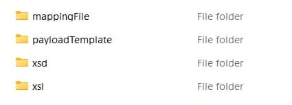 Select the predefined shipment message definition that you’re using and select Export Transformation Package. The transformation package has four folders: mappingFile, payloadTemplate, xsd, and xsl.